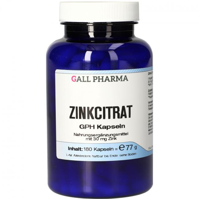 Pflichtangaben ZINKCITRAT 30 mg Zink GPH Kapseln, 180 Stück