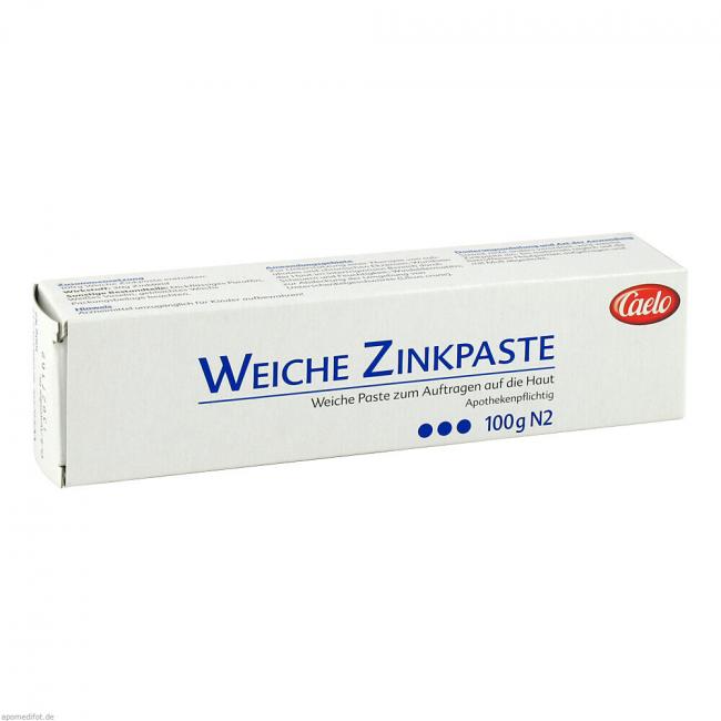 Weiche Zinkpaste. Anwendungsgebiete: Zur Unterstützung einer Therapie von subakuten und chronischen Ekzemen; Wundsein der Haut im intertriginösen Bereich durch Scheuern und Feuchtigkeit; Windeldermatitis; zur Abdeckung der Umgebung von Unterschenkelgeschwüren (Ulcus cruris).