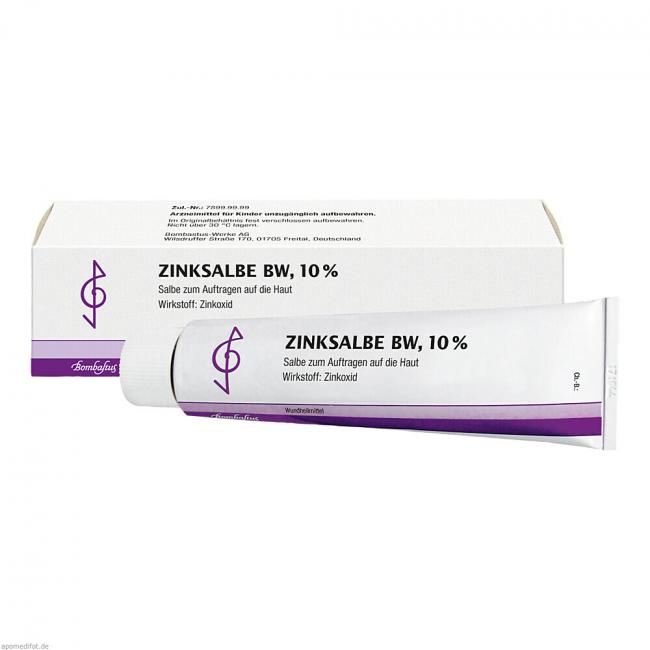 Zinksalbe BW 10%, Salbe. Wirkstoff: Zinkoxid. Anwendungsgebiete: äußerlich angewendet zur Unterstützung der Wundheilung, auch bei nässenden oder juckenden Wunden, bei Schrunden und als Decksalbe. Warnhinweis: Enthält Cetylstearylalkohol und Wollwachsalkohole.